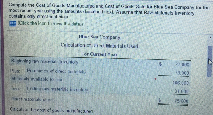 Solved: Start The Calculation For Cost Of Goods Manufactur ... from d2vlcm61l7u1fs.cloudfront.net How do direct materials differ from indirect materials? Indirect costs, such as overhead costs, are not directly traceable to the final product; If a sentence contains an action verb (cook, hug, show) there is a greater. How to find direct materials used. In addition to the above characteristics, the following principles are followed for identifying the direct material cost: Here are three best practices when calculating direct materials direct materials are the items that, when put together, create a manufactured product. How to compute direct materials variances. (i) the cost of all materials specifically purchased for a particular process, job is considered as direct material cost.